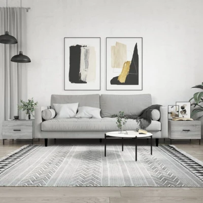 General description Add a touch of elegance to your living room with these stylish coffee tables. Made from high-quality engineered wood, these tables feature a smooth surface, ensuring strength, stability, and resistance to moisture. The design includes a sturdy tabletop, perfect for placing drinks, food, and decorative items, while the iron legs provide stability and a calm style to your interior. Technical specifications Colour: Grey sonoma Material: Engineered wood, iron Dimensions: 50 x 50 x 40 cm (W x D x H) Assembly required: Yes Delivery contains: 2 x Coffee table Other information