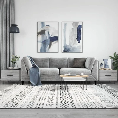 General description Add a touch of elegance to your living room with these stylish coffee tables. The set includes two coffee tables made from high-quality engineered wood, featuring a smooth surface that offers strength, stability, and moisture resistance. The design includes a sturdy tabletop, perfect for placing drinks, food, and decorative items, while the iron legs provide stability and a calm aesthetic to your interior. Technical specifications Colour: Grey sonoma Material: Engineered wood, iron Dimensions: 50 x 50 x 40 cm (W x D x H) Assembly required: Yes Delivery contains: 2 x Coffee table Other information