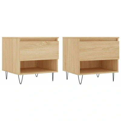 ManoManoGeneral description Add a touch of elegance to your living room with these stylish coffee tables. Made of high-quality engineered wood, these tables feature a smooth surface, strength, stability, and moisture resistance. They are easy to clean with a damp cloth and provide ample storage space with a drawer and a compartment to keep your essentials organized. Technical specifications Colour: Sonoma oak Material: Engineered wood, metal Dimensions: 50 x 46 x 50 cm (L x W x H) Assembly required: Yes Delivery contains: 2 x Coffee table Other information Warning: To prevent it from being overturned, this product must be used with the provided wall attachment device. SKU: 830915