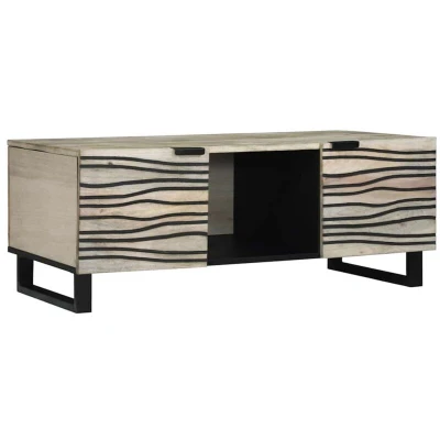 ManoManoGeneral description This coffee table is effortlessly stylish, mixing rustic and industrial elements to create an eye-catching centerpiece for your living room. Its spacious top and ample storage make it great for stashing away all your essentials while adding a dash of charm to your home decor. Perfect for those who love the look of natural materials, it’s solid and smooth, offering both style and practicality. Technical specifications Colour: Beige and black Material: Solid mango wood and engineered wood Overall dimensions: 100 x 54 x 40 cm (L x W x H) Legs height: 10 cm With 1 shelf Storage number of: 3 Max weight: 75 kg Assembly required: Yes EAN: 8721158450777 SKU: 4017984 Brand: vidaXL Included Components Mango wood shelves for storage Sturdy iron legs Back and swing hinge doors that open to a full 90° Care & Maintenance Wipe down with a dry cloth to keep it looking nice Avoid harsh chemicals to preserve the wood texture Assembly is straightforward with two people and a