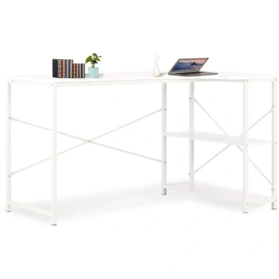 General description Like all the best designs, our simple yet stylish computer desk is clean, space-saving, and sure to never date. It provides a large working area, making it a very practical, convenient, and versatile piece of furniture for use at home or in the office. The L-shaped desk is designed with two shelves for organizing your books, folders, documents, or displaying decorative items. Made of engineered wood and powder-coated metal, the writing desk is exceedingly stable, sturdy, and durable. Additionally, the metal frame endows the desk with an industrial style, bringing a touch of unique charm to your interior. Upgrade your interior to the next level with our modern office desk! Technical specifications Colour: White Material: Engineered wood and powder-coated metal Overall dimensions: 120 x 72 x 70 cm (W x D x H) The first shelf size: 68 x 21.2 cm (W x D) The second shelf size: 72 x 21.2 cm (W x D) Maximum load capacity of tabletop: 40 kg Maximum load capacity of each