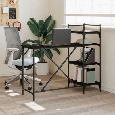 vidaXL Computer Desk with Shelves Engineered Wood & Metal Frame Black Spacious Writing Table Standing Office 120 x 47 109 cm