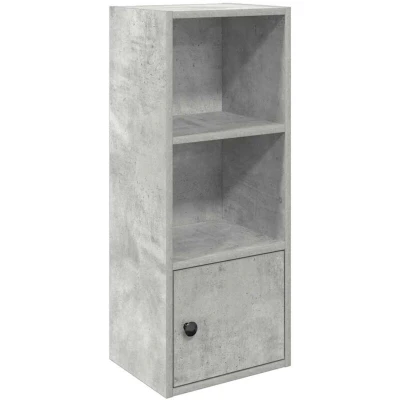 ManoManoGeneral description This bookcase offers the perfect solution for organizing your books while serving as a stylish and functional addition to your home decor. It features multiple shelves and a cabinet with a door, providing ample space for keeping your collection of books, magazines, and documents in good order. The door can be installed on the left or right side, depending on your preference, making it a versatile choice for any room. Technical specifications Colour: Concrete grey Material: Engineered wood Overall dimensions: 31 x 24 x 77 cm (W x D x H) Compartment dimensions (each): 28 x 24 x 23.5 cm (W x D x H) Assembly required: Yes Usage This bookcase is ideal for your book collection. It can also be used as a display shelf for your collections, photos, awards, potted plants, etc. Easy to maintain: Thanks to its smooth surface, the cabinet is easy to clean with a damp cloth and requires less maintenance. Other information Warning: To prevent it from tipping over, this product