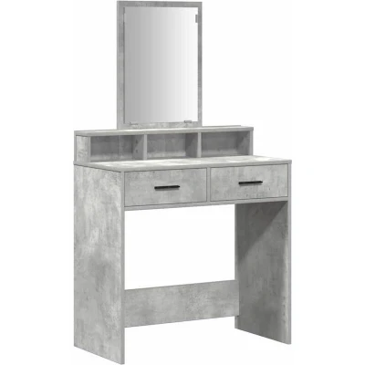 ManoManoGeneral description This stylish Dressing Table in Concrete Grey features LED Lights, combining aesthetics and functionality, ideal for modern personal spaces. Its rectangular shape and textured surface enhance its appeal, making it a standout piece in any bedroom. Constructed primarily from engineered wood, it is designed for durability and longevity, ensuring it withstands daily use while maintaining its sleek appearance. Technical specifications Colour: Concrete grey Material: Engineered wood Overall dimensions: 79 x 41 x 140 cm (L x W x H) Weight: 23.5 kg Power source: Plug Assembly required: Yes Included components: 1 x Dressing table, plane mirror, shelves, and drawers Usage Designed for modern bedrooms, this dressing table serves as a hub for all grooming needs. Its versatile design complements various decor styles, making it suitable for different lifestyles. Perfect for detailed grooming or quick touch-ups, it adapts easily to your routine. Care & Maintenance To maintain its