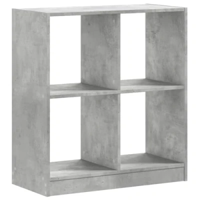 ManoManoGeneral description Create extra storage in your home and office with this stylish bookcase in concrete grey. It features four spacious compartments, perfect for organizing your collectibles, books, knick-knacks, framed photos, and other decorative items. Technical specifications Colour: Concrete grey Material: Engineered wood Dimensions: 68.5 x 32 x 75 cm (W x D x H) Maximum load capacity (total): 70 kg Assembly required: Yes Usage Stable and durable: Engineered wood is moisture-resistant, preventing warping and splitting. Easy to maintain: The smooth surface allows for easy cleaning with a damp cloth. Partition design: Organize your items efficiently with the built-in partitions. Versatile shelf: Can also serve as a room divider, enhancing your living space. Other information Warning: To prevent tipping, use the provided wall attachment device.