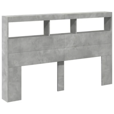 vidaXL Concrete Grey Engineered Wood Headboard Cabinet with LED 160cm Bedroom Furniture, RGB Lighting, Storage Compartments