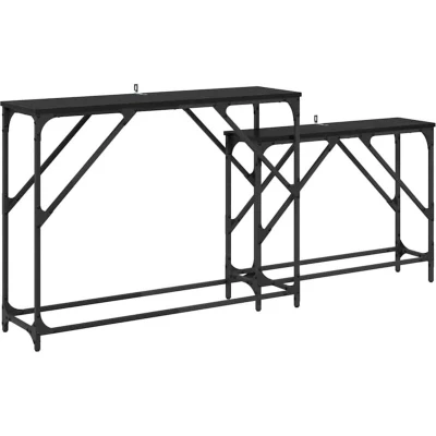 vidaXL Console Table 2 pcs Black Oak 100 x 28 75 cm Engineered Wood
