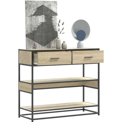 vidaXL Console Table 90x35x80 cm Sonoma Oak Entryway Stand Engineered Wood & Metal Hallway/Living Room Furniture with Drawers/Shelves Modern Decor