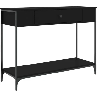 ManoManoGeneral description Add a touch of elegance to your entryway, living room, or hallway with this stylish console table. Made of high-quality engineered wood, this table features a smooth surface, strength, stability, and moisture resistance. It is easy to clean and offers ample storage space for magazines, books, decorative items, and other daily essentials, keeping them well-organized and within reach. Technical specifications Colour: Black Material: Engineered wood, metal Dimensions: 100 x 34.5 x 75 cm (L x W x H) Assembly required: Yes Installation This product must be used with the provided wall attachment device to prevent it from being overturned. Usage Ideal for entryways, living rooms, or hallways. Can be used to store magazines, books, and decorative items. Other information