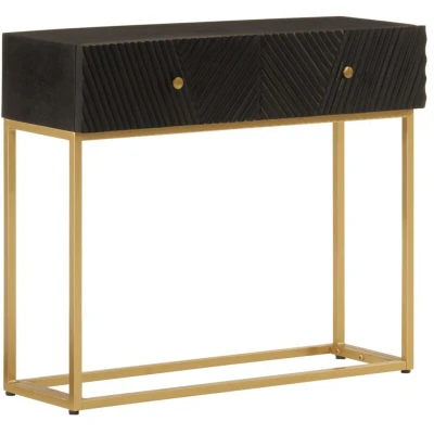 vidaXL Console Table Black 90x30x76 cm Solid Wood Mango and Iron
