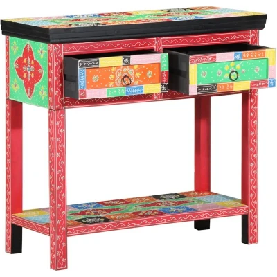 vidaXL console table multicolour solid wood bohemian design with drawers painted finish for indoor living room/entryway rectangular shape 2.5cm surface height 68cm leg