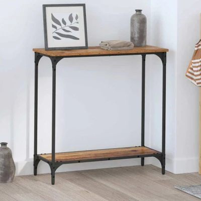 ManoManoGeneral description This Industrial Console Table blends sleek design with practicality, making it an excellent choice for modern living. With its sturdy industrial vibe, this narrow table adds a stylish touch to your living room or hallway. The clean lines and all-black finish make it versatile, perfect for displays or storage in any snug spot. Ideal for flats or chic homes, its mix of materials and simple style makes it a classic pick. Technical specifications Colour: Old wood Material: Engineered wood Overall dimensions: 75 x 30.5 x 75 cm (W x D x H) Weight: 6 kg Frame material: Steel Indoor / outdoor: Indoor only Assembly required: Yes EAN: 8721288900036 SKU: 883519 Included Components 1 x Console table Solid shelves for storage Features / Function / Design Adjustable feet for stability on uneven floors Sleek rectangular shape with a smooth matte finish Multi-purpose use, suitable for various room layouts Recommended Uses Perfect for living rooms or hallways Space-saving design