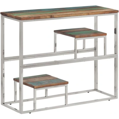 Vidaxl Console Table Silver Stainless Steel and Solid Wood Reclaimed