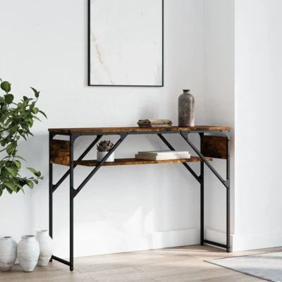 ManoManoGeneral description Add a touch of elegance to your entryway, living room, or hallway with this stylish console table. The table is designed to provide ample storage space while enhancing your interior decor. Technical specifications Colour: Smoked oak Material: Engineered wood, metal Dimensions: 105 x 30 x 75 cm (L x W x H) Max. loading capacity: 80 kg Assembly required: Yes Installation To prevent it from being overturned, this product must be used with the provided wall attachment device. Usage The hall table offers ample storage space for keeping your magazines, books, decorative items, and other daily essentials well-organised and within reach. The adjustable feet with plastic pads keep the hallway table balanced on uneven ground and increase stability. Other information