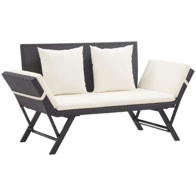 VidaXLThis 2-in-1 outdoor garden bench is a perfect choice for relaxing on your front porch on a sunny day or lying down for stargazing at night. Durable material: PE rattan, also known as poly rattan, is weather resistant and easy to clean. It remains beautiful on the outside for a long period of time. It offers great quality, convenience and an aesthetic look.2-in-1 design: The seating can be converted from a bench to a day bed and back again quickly and easily thanks to the adjustable sides.Stable frame: The powder-coated steel frame of the garden seating ensures sturdiness and stability.Comfortable seating: The thickly padded and removable cushion is highly comfortable that adds an extra comfortable seating experience. Note:Each product comes with an assembly manual in the box for easy assembly.In order to extend the life of your outdoor furniture, we recommend you to protect it with a waterproof cover.