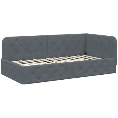 vidaXL Corner Bed Frame with Headboard Dark Grey 90 x 200 cm Velvet