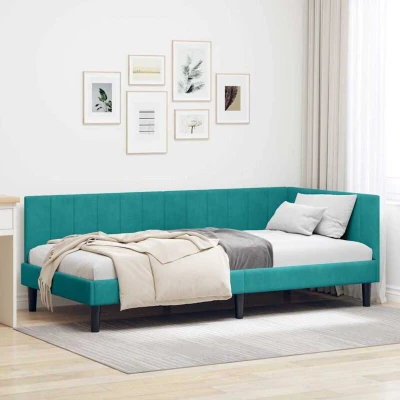 vidaXL Corner Bed Frame with Headboard Turquoise 100 x 200 cm Velvet