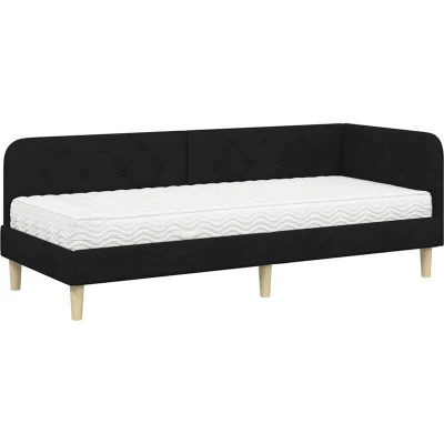 vidaXL Corner Bed Frame with Mattress Black 80 x 200 cm Fabric