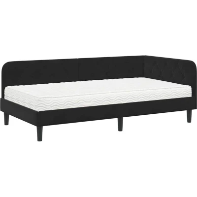vidaXL Corner Bed Frame with Mattress Black 90 x 190 cm Velvet