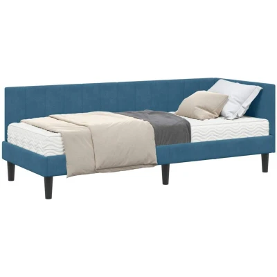 vidaXL Corner Bed Frame with Mattress Blue 80 x 200 cm Velvet