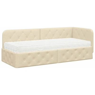 vidaXL Corner Bed Frame with Mattress Cream 80 x 200 cm Fabric