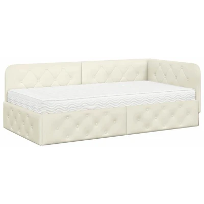 vidaXL Corner Bed Frame with Mattress Cream 90 x 190 cm Velvet