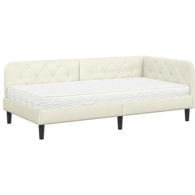 vidaXL Corner Bed Frame with Mattress Cream 90 x 190 cm Velvet