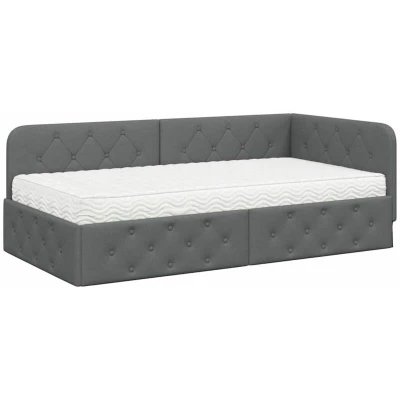 vidaXL Corner Bed Frame with Mattress Dark Grey 90 x 190 cm Fabric