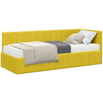 vidaXL Corner Bed Frame with Mattress Yellow 80 x 200 cm Velvet