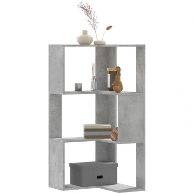 vidaXL Corner Bookcase 3 Tier Bookshelf, Concrete Grey, Engineered Wood, 50 x 102 cm Living Room, Bedroom, Office