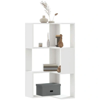 vidaXL Corner Bookcase 3 Tier, Engineered Wood, White, Space Saving Bookshelf Cabinet for Living Room, Bedroom, Office