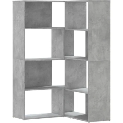 vidaXL Corner Bookcase 4 Shelves Concrete Grey 85 x 140 cm Wood Material