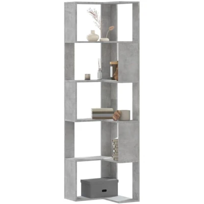 vidaXL Corner Bookcase 5 Tier Bookshelf Concrete Grey Engineered Wood