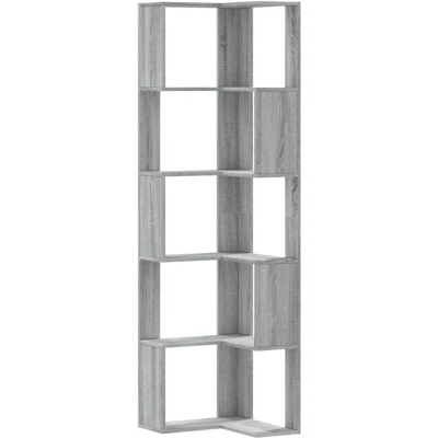 vidaXL Corner Bookcase 5 Tier Bookshelf Grey Sonoma Engineered Wood