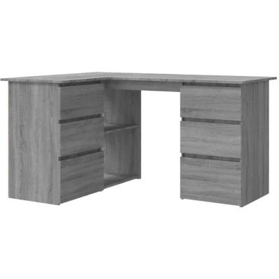 ManoManoGeneral description Invite an air of elegant charm into your study and working area with this sleek and modern corner desk! The desk is designed to fit perfectly in tight spaces, making it ideal for offices, dorms, or any space-limited home. Technical specifications Colour: Grey sonoma Material: Engineered wood Dimensions: 145 x 100 x 76 cm (L x W x H) Storage The desk features ample storage options: Two open compartments Two compartments with doors Four drawers This allows you to keep your study supplies such as books, files, and other useful items within reach. Installation Each product comes with an assembly manual in the box for easy assembly. Other information