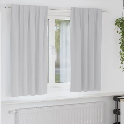ManoManoGeneral description These modern blackout curtains offer both style and functionality for any room in your home. Using a clean-lined contemporary design, these curtains bring sophistication to living rooms, bedrooms, and office spaces. Beyond aesthetics, they provide excellent room darkening and thermal insulation, making them a perfect choice for creating a cozy, private atmosphere in your space. Their elegant appearance enhances the interior decor while ensuring practicality and comfort for users. Technical specifications Colour: Light grey Material: Polyester Overall dimensions: 175 x 140 cm (L x W) Weight: 0.52 kg 80%-90% Blackout Triple Weave Design Width of pocket opening: 6 cm Indoor use only Delivery contains: 2 x Curtain Assembly required: Yes SKU: 4107459 Brand: vidaXL Installation 4 installation methods: Small hooks, large hooks, tabs, rod pocket Usage Manual opening system for easy adjustment of light and privacy Designed to block 80%-90% of light, ideal for bedrooms or