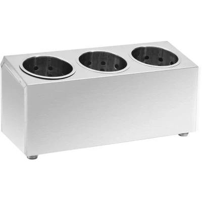 Our cutlery holder is designed to stand on any table or unit top, perfect for use in restaurants, hotels and at home. This cutlery holder, made of stainless steel, is dishwasher safe and easy to clean. Non-slip rubber feet guarantee a stable stand and protect the work surface from scratches. In addition, this utensil holder includes 3 removable inserts, offering ample space for your knives, chopsticks, spoons and more. Material: Stainless steel Overall dimensions: 38.5 x 15 x 18 cm (W x D x H) Single container dimensions: Ø11.7 x 14 cm (Diameter x H) Number of grids: 3 With 3 removable inserts Corrosion free SKU: 51226 EU responsible party Haba Trading B.V. Mary Kingsleystraat 1 5928SK Venlo The Netherlands [email protected]