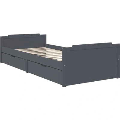 vidaXL Dark Grey Solid Wood Pine Single Bed Frame with Storage Drawers Scandinavian Styled, 90x200 cm