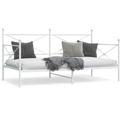 vidaXL Day Bed/Sofa Bed Sleeper Steel Frame White 100x190 cm Modern Design Bedroom/Living Room Furniture with Storage Space