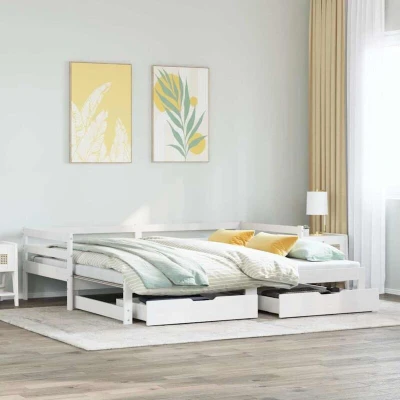 vidaXL Daybed with Trundle and Drawers, Sofa Bed for Living Room Bedroom, Guest Bed, Sleeper Sofa, Modern Style, White 80x200 cm Solid Wood Pine