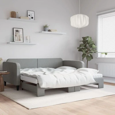 vidaXL Daybed with Trundle and Mattresses Light Grey 90x190 cm Fabric