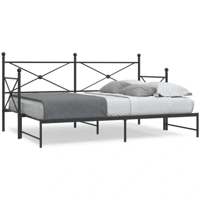 vidaXL Daybed with Trundle Metal Frame Sofa Bed for Living Room/Bedroom Black Steel 197x184cm