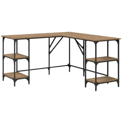 ManoManoThis L-Shaped Office Desk with Shelves is a perfect addition to any study or office space, boasting an industrial style that pairs raw materials with a sleek, modern design. Built to fit conveniently into corners, its L-shaped form maximizes the available area, making it ideal for placing multiple monitors or workstations. The rough surface texture enhances its weathered finish, evoking the charm of vintage industrial furniture while offering ample workspace to accommodate all your office essentials. Materials: Crafted from high-quality engineered wood, this desk offers a dependable surface that stands up to daily use and heat exposure without succumbing to wear. The beautifully weathered finish adds an aged charm, inviting nostalgia and enhancing the industrial look. Its construction is designed to maintain durability over time, providing a robust workspace for various needs. Included Components: The desk includes independent free-standing shelves made from engineered wood, perfectly