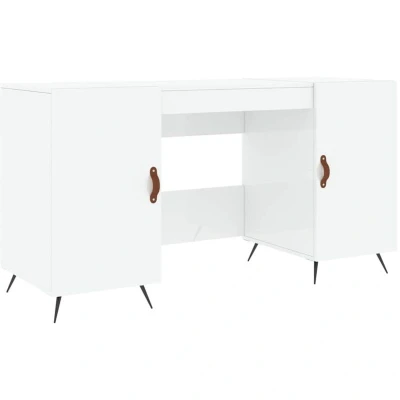 ManoManoGeneral description Introduce an air of elegant charm into your study or working area with this practical desk! Designed for tight spaces, this desk is perfect for dorms, bedrooms, apartments, or small home offices. Technical specifications Colour: High gloss white Material: Engineered wood, iron, faux leather Dimensions: 140 x 50 x 75 cm (L x W x H) Assembly required: Yes Compatibility and accessories 4 compartments with doors for ample storage of study supplies such as books and files. Installation To prevent it from being overturned, this product must be used with the provided wall attachment device. Usage This desk is ideal for organizing your workspace while adding a touch of style to your interior. The iron feet provide stability, and the faux leather door handles protect against accidental knocks and bumps. Other information