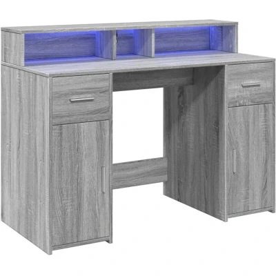 vidaXL Desk with LED Lights Grey Sonoma Engineered Wood Ample Storage for Office or Bedroom, Ideal Working, Writing, Gaming Dimensions 120 x 55 91 cm