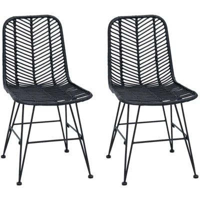vidaXL Dining Chair 2 pcs Black 44.5 x 55 85 cm Rattan and Iron