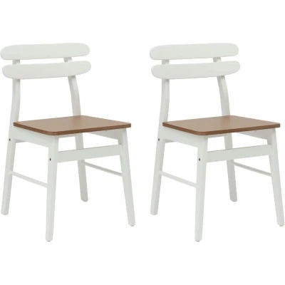 vidaXL Dining Chair 2 pcs White and Natural Solid Rubber Wood