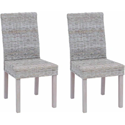 ManoManoThis set of dining chairs combines modern aesthetics with practical functionality, seamlessly enhancing any living or kitchen space. With clean lines and a minimalist approach, these chairs provide a charming yet sophisticated presence. Their appealing woven rattan material offers a touch of nature, while the mahogany wood frame adds structural integrity. Perfect for intimate dinners or lively get-togethers, this chair's thoughtful design encourages relaxation and social interaction. Material Excellence Crafted from natural rattan, these chairs boast a unique hand-woven design that stands out as both visually appealing and robust. Rattan offers a comfortable yet sturdy seating option, ensuring a pleasant experience with every use. The solid mahogany wood frames provide lasting support, showcasing a natural finish that is both stylish and sophisticated. These materials, chosen for their quality and aesthetics, offer a durable solution for seating needs and elevate any room’s décor.