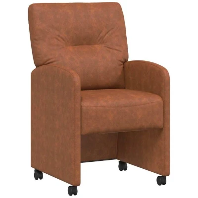 ManoManoThis dining chair brings a blend of modern design and functionality to your dining area. With its clean lines and minimal ornamentation, it offers a sleek appearance paired with a comfortable experience for your dining needs. Perfect for anyone seeking both style and support, this chair adds a touch of elegance to any room. Its ergonomic design ensures comfort during long meals, while the smooth roll of the wheels allows for easy placement around the table. Crafted for indoor use, this chair is an exemplary fixture for both casual family dinners and formal occasions, embodying a functional yet sophisticated piece for any dining setting. Materials: Crafted from luxury faux leather, this chair provides a sleek, finished surface that's easy to clean and maintains its appearance through multiple gatherings. Pairs of plywood and metal frame offer a balanced combination of strength and lightness, making it easy to reposition the chair when necessary. Robust and reliable, these quality