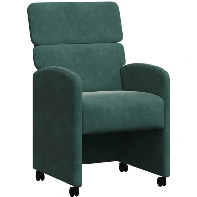 These Dining Chairs provide a comfortable and stylish addition to any dining room with their modern design, characterized by simple lines and practical functionality. Crafted for indoor use, they create an inviting atmosphere, perfect for dining activities. This set of two chairs, made of soft velvet, offers a plush seating experience while seamlessly complementing existing furniture arrangements. Materials : Finished in luxurious velvet, these dining chairs promise a rich tactile experience, elevating the aesthetics of your dining room. The velvet material enhances the overall look with a subtle sheen and softness, ensuring comfort during extended dining occasions. Both stylish and durable, the material resists wear and adds a touch of elegance to your space, making them a favorite choice for contemporary homes. Included Components : These chairs come with flat armrests that offer support without compromising on style, allowing diners to rest their arms comfortably. The presentable back design provides a sleek look and strengthens the chair's modern appearance, while the foam filling ensures a cushy seating experience. These components work in harmony to create a functional and aesthetically pleasing piece of furniture. Features /Function /Design: Equipped with wheels or casters, these chairs offer flexibility and ease of movement, allowing you to reposition them as needed without effort. The ergonomic structure supports comfort and proper posture, crucial for long hours of dining or hosting. Their modern design aligns with the latest interior styling ,offering a chic addition to your dining room decor. Recommended Uses: Perfectly suited for dining rooms, these chairs enhance dining experiences, whether during family meals or entertaining guests. Their mobility and comfortable design also make them viable for use in home offices or as additional seating, providing versatility beyond the dining table. Their aesthetic appeal harmonizes with open-plan living spaces, creating a cohesive look. Care &Maintenance : Maintain the appearance of your dining chairs with simple care practices. Regularly wipe the velvet surface with a soft, dry cloth to remove dust. For deeper cleaning, consider professional upholstery services. Proper care ensures longevity and keeps the chairs looking plush and inviting season after season.